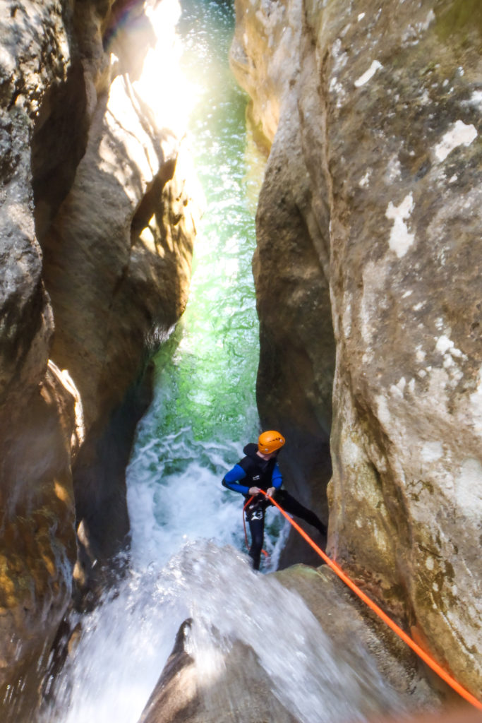 Descubrimientos y sensaciones en la fabulosa FORMIGA: descenso intenso y muy lúdico de este cañón en un desfiladero de conglomerado. Este clásico es aún más interesante en primavera porque su flujo un poco más fuerte de lo habitual le da un lado sensacional y deportivo a este cañón. Los toboganes se vuelven casi eyectables y las cascadas son más impresionantes. En resumen, ¡redescubre la Formiga!